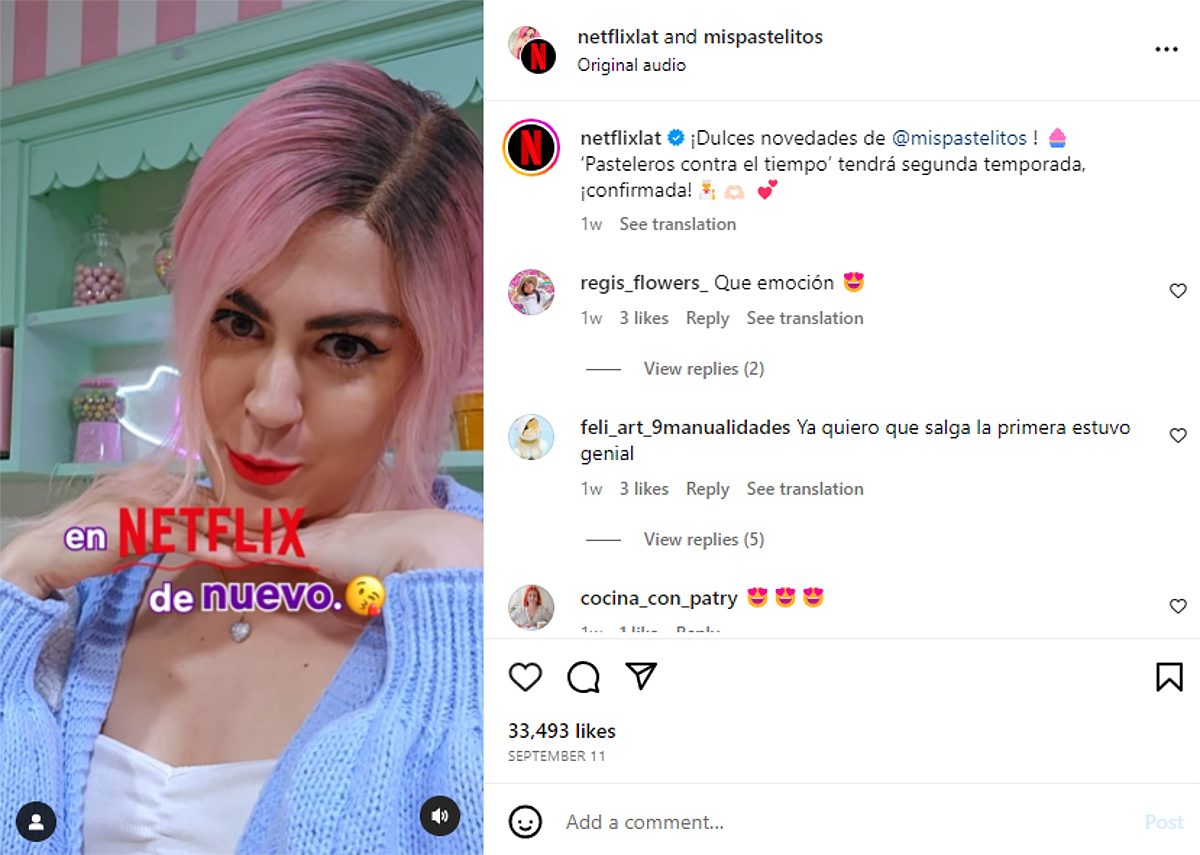 Netflix consiguió un gran número de clientes gracias al marketing de influencers. El popular servicio de streaming se dio cuenta de que muchos consumidores confían en las recomendaciones de los influencers. El poder de los líderes de opinión, como Mis Pastelitos, hizo que Netflix destacara y creciera exponencialmente.