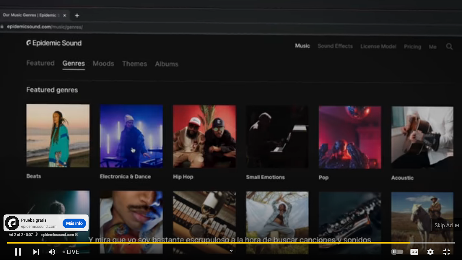 Estos anuncios solamente están disponibles en computadora y pueden aparecer en cualquier momento de la reproducción. Se trata de anuncios a manera de banners que aparecen en la parte inferior de la ventana de reproducción.