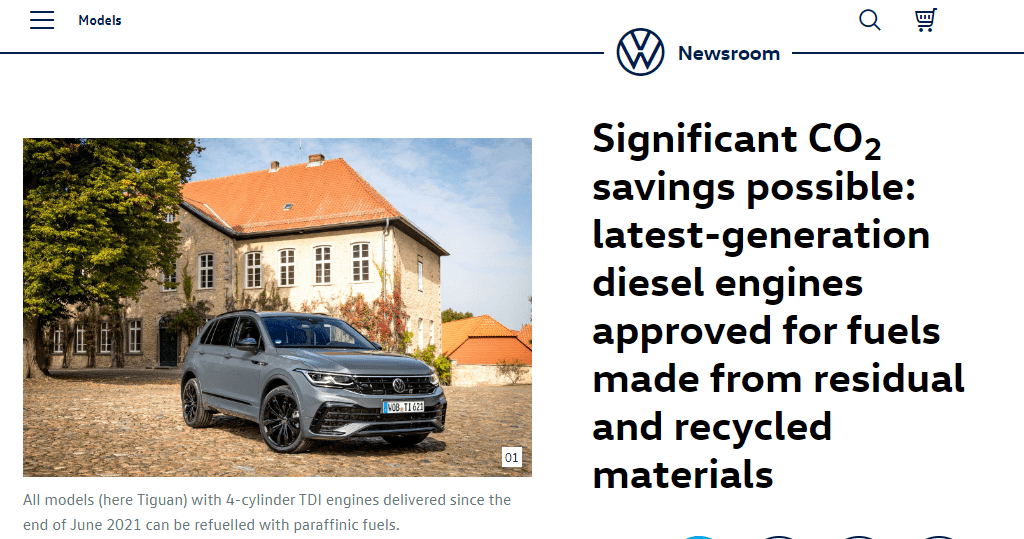 Однако, полный отказ от автомобилей с дизельным двигателем сейчас может привести к потере аудитории, поэтому Volkswagen придумала альтернативу. Компания предлагает своим клиентам модифицированные модели двигателей, способные работать на парафиновом топливе, что позволяет сократить выбросы CO2 на 70-95%.