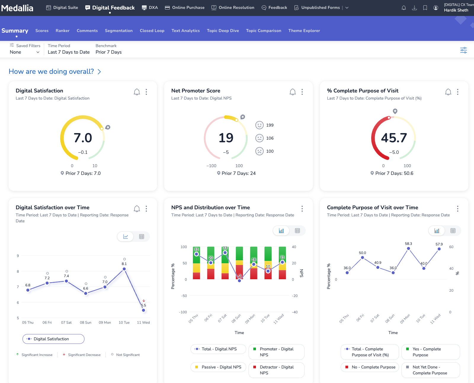 There is a dashboard interface in Medallia below. You can track consumer problems with real-time alerts and find out suggestions on how to provide better experiences to your clients.