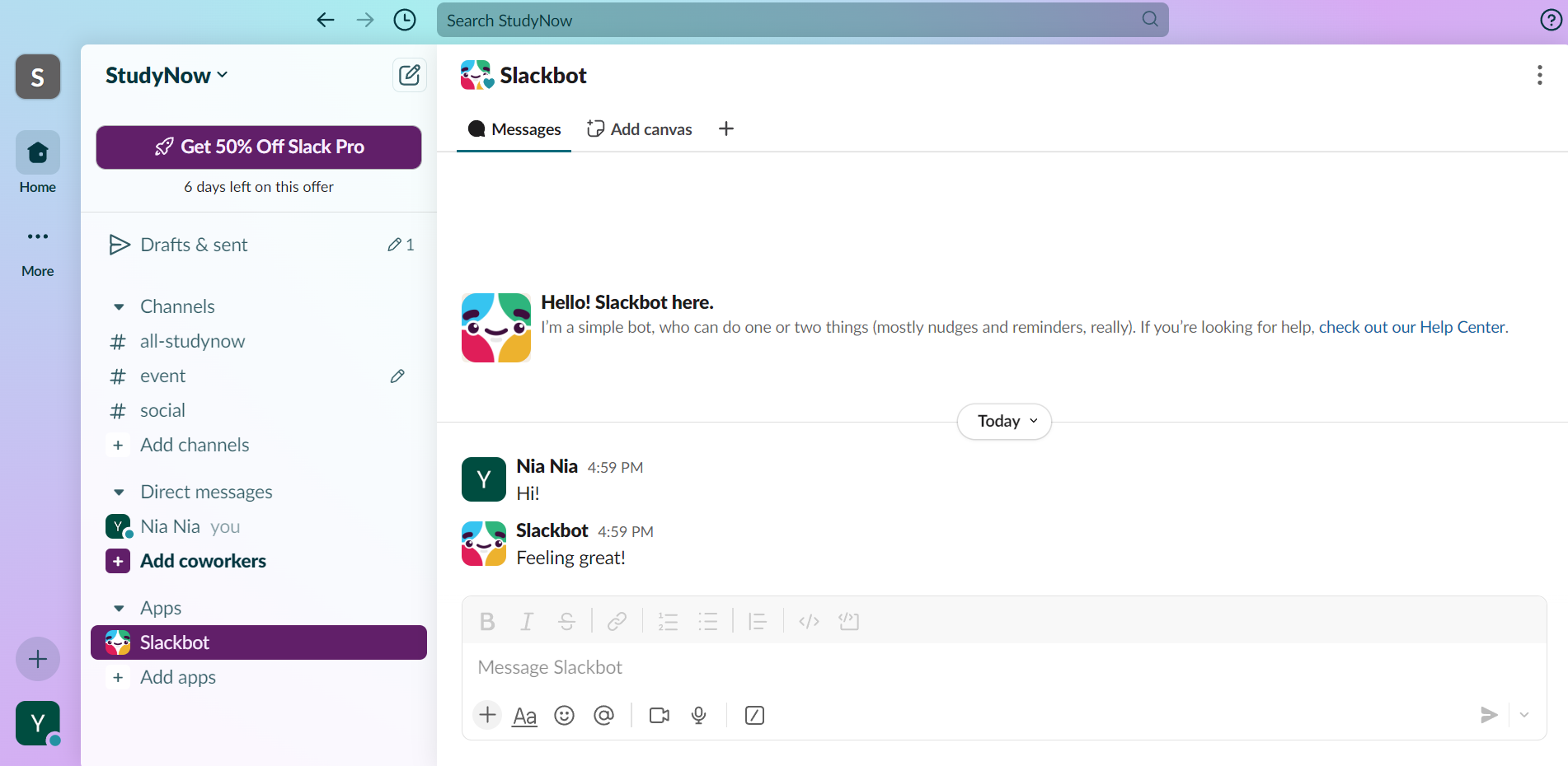 Let’s take Slack, a platform for business that helps bring all team members together, for example. It provides new users with interactive onboarding and a chatbot that guides them through the process.
