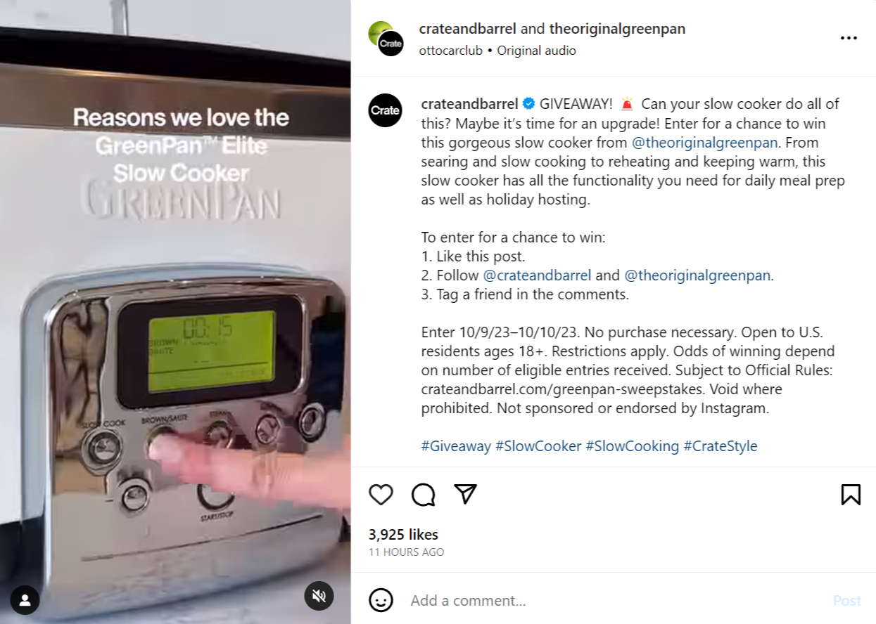 For instance, The Original GreenPan announces its giveaway on Instagram.