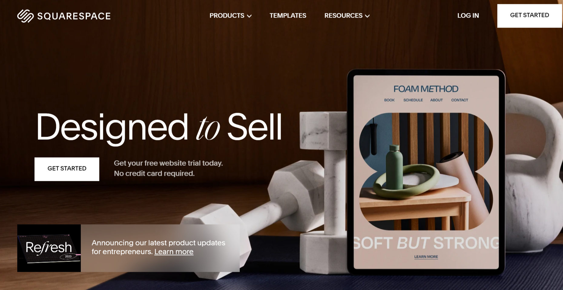 Below, you can see Squarespace’s invitation for prospects to get started with a free trial without any credit card details.