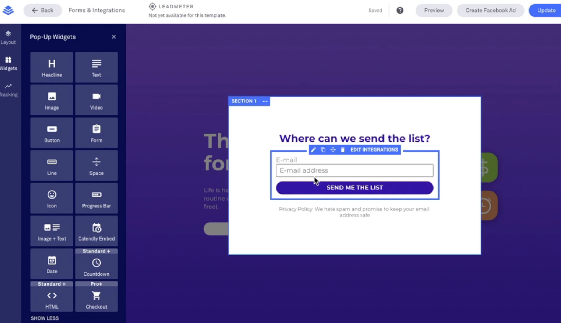 You can create a lead capture page by using templates in special services like SendPulse, Optimonk, Mailchimp, or HubSpot. You can browse their libraries of templates to choose the most appropriate for your purpose and build a lead capture page in minutes.