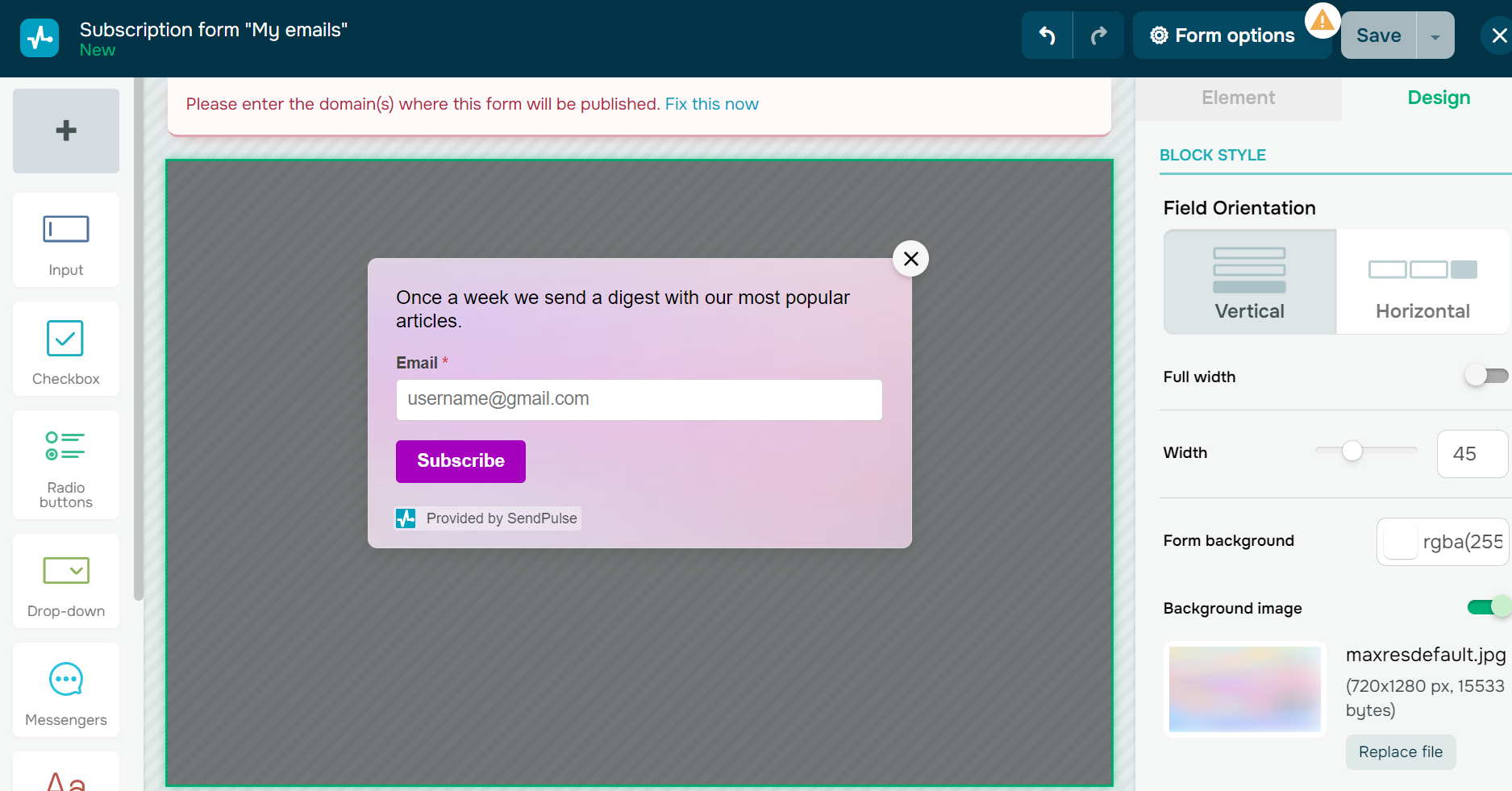 When potential customers open your website, they can find a subscription form. This form encourages them to subscribe to your newsletters and receive updates and exclusive offers. By providing a subscription form, you can obtain prospects’ contact information, such as name, phone number, and email. This information is essential to follow up with your potential customers and establish trusting relationships. SendPulse allows you to create professional subscription forms without knowing the code for free.