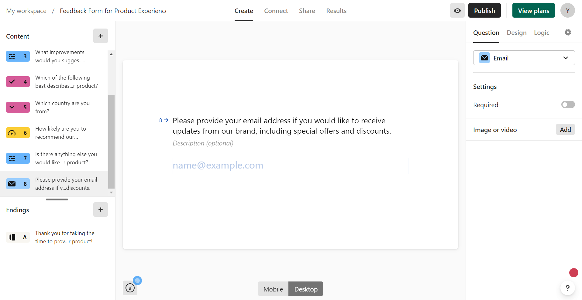 Typeform is an online form builder well-known for its visually appealing and easy-to-fill-in forms. Using AI, users can create professional forms about anything in seconds. Once the form is generated, service users will only need to optimize it and make some slight changes.