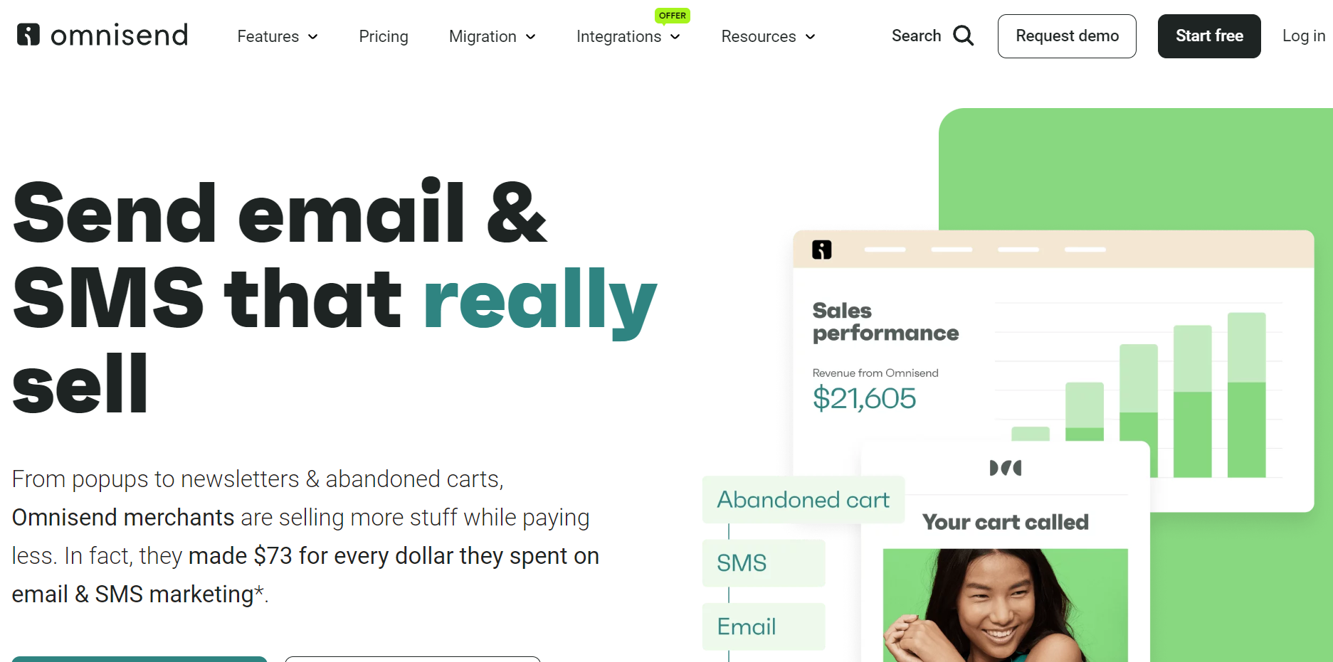 Omnisend is an eCommerce platform enabling businesses to send emails and SMS, deliver web push notifications, and create marketing automation, improving engagement and sales. It allows you to seamlessly integrate several channels and provide customers with personalized experience through the preferred communication platforms.