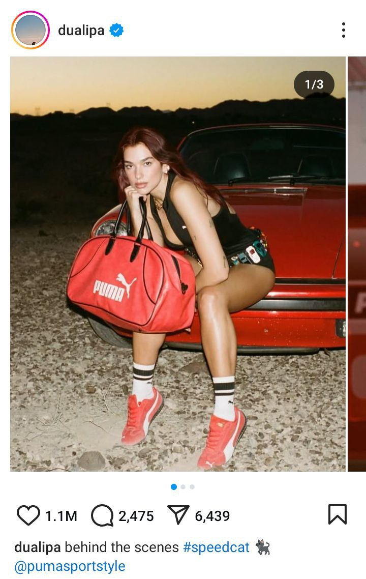 Below, you can see how Dua Lipa promotes Puma and its sportswear. The singer’s huge following enables the brand to reach more people and encourage them to choose the company over competitors.