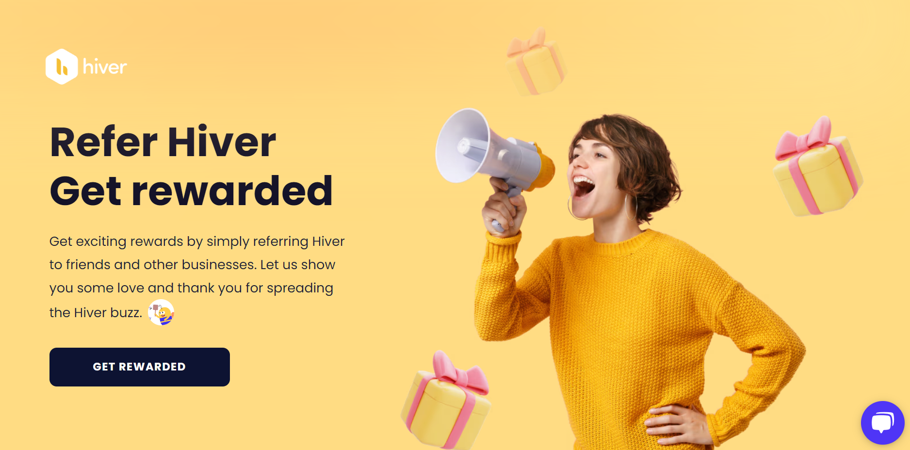 Below, you can see how Hiver invites customers to refer their friends and get rewarded.