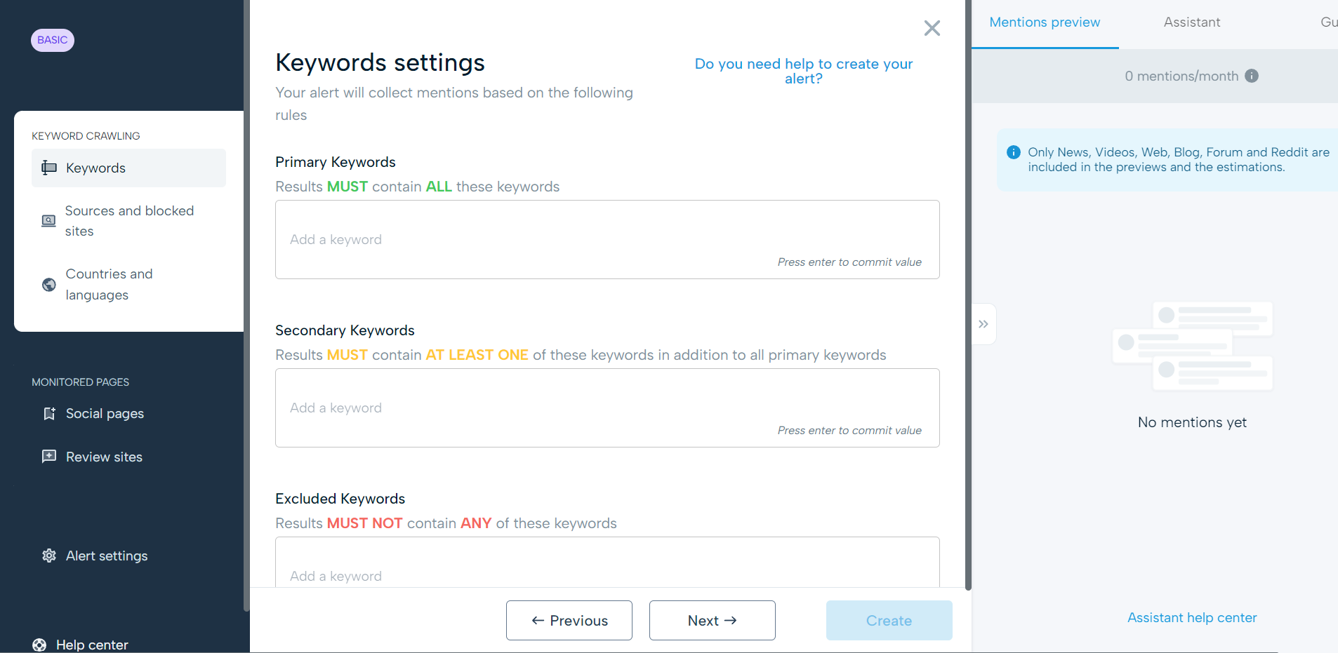 Below, you can see how to use the platform to set up an alert that collects mentions based on your keywords.