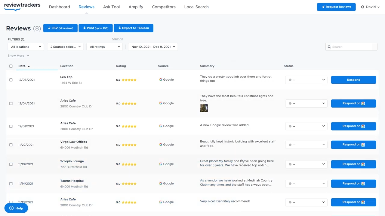 Below, you can see the process of monitoring customer reviews using ReviewTrackers.