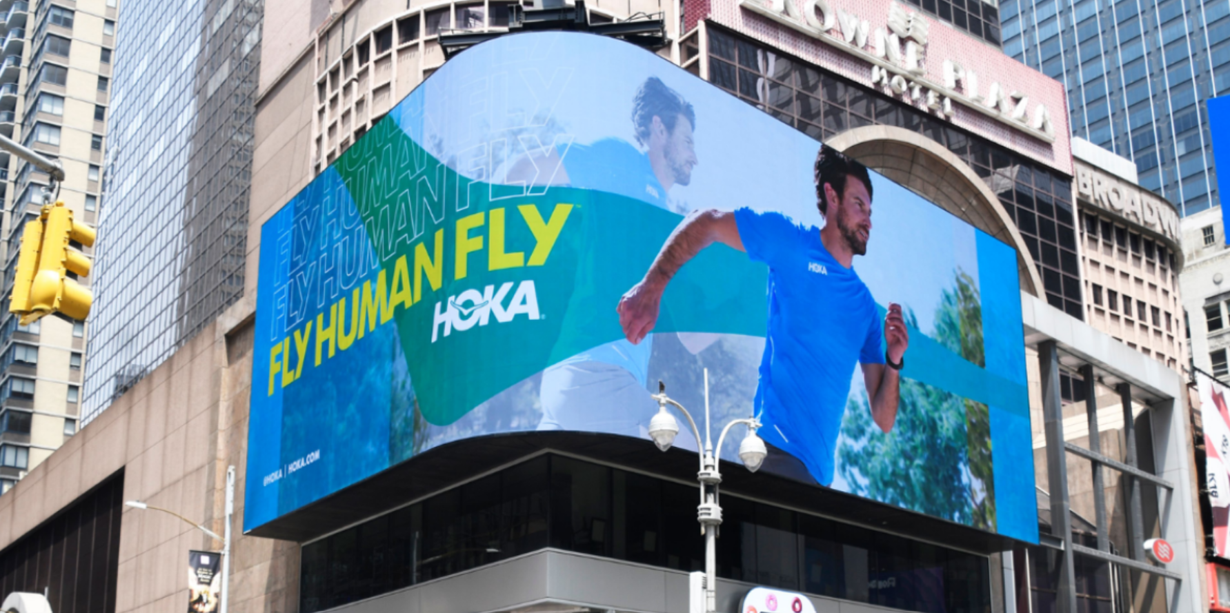 Hoka’s digital billboard grabs the attention of people passing by and makes them discover the brand. Its bright colors and visible location help people see the billboard from afar. It reminds them of the brand and encourages them to visit the nearest stores for a new pair of Hoka.