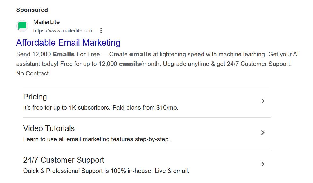 Search ads: MailerLite