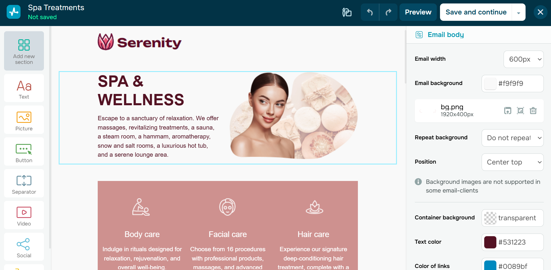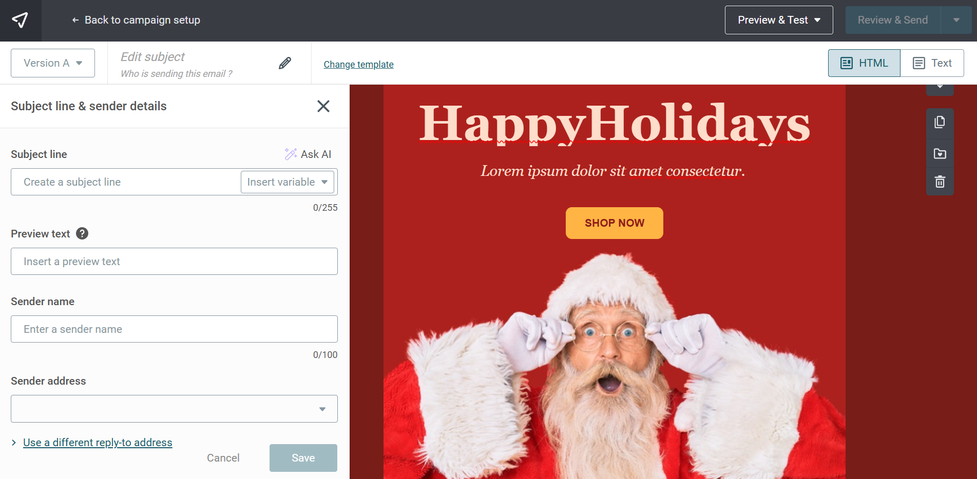 Below, you can see how to create an email campaign using a template in SendPulse.