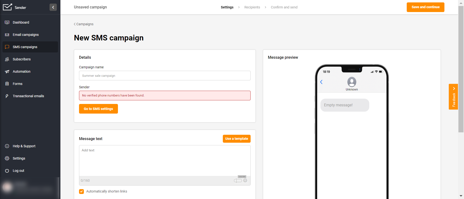 Below, you’ll see how to create an SMS campaign with Sender.