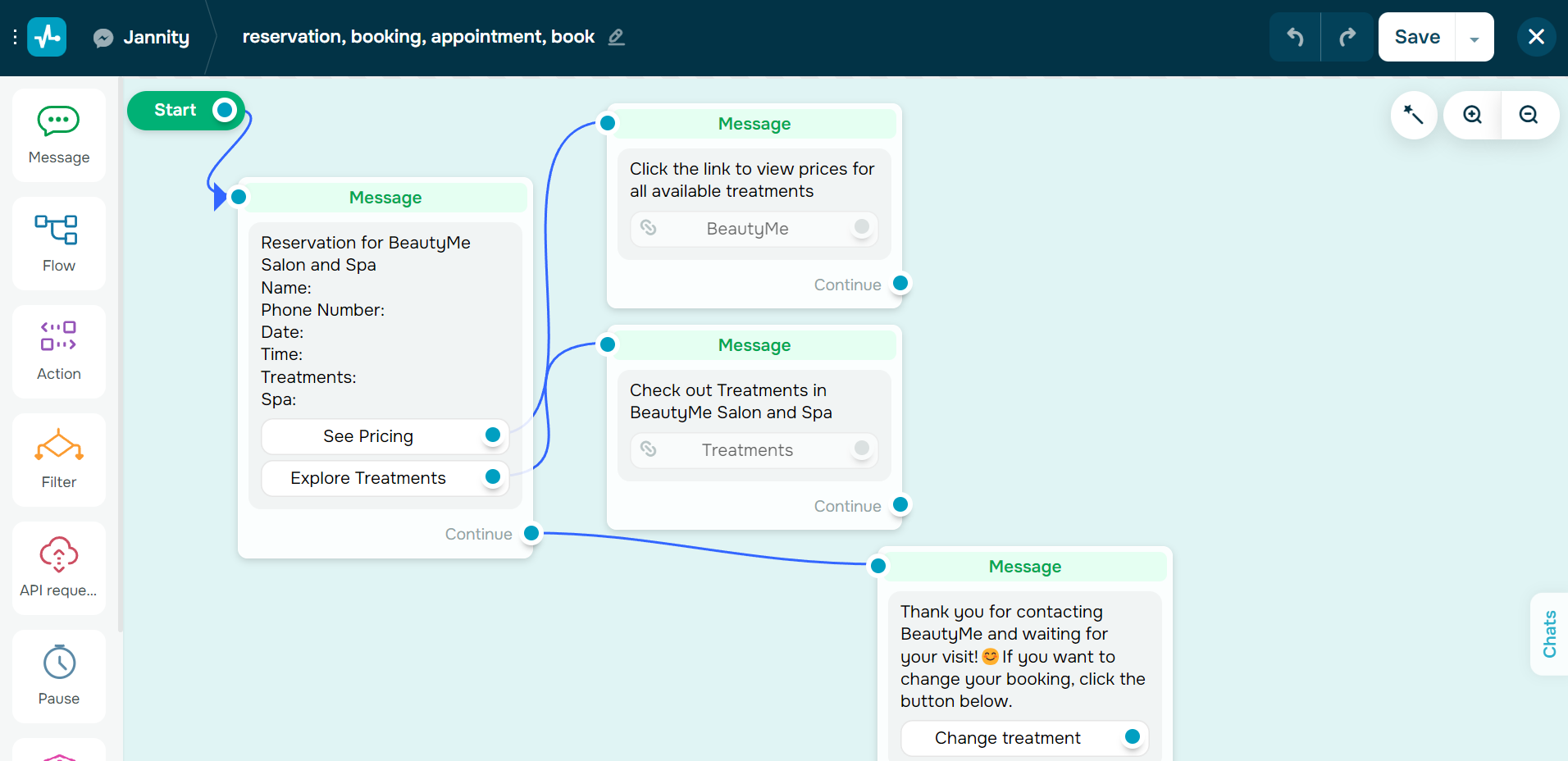 Below you can see an example of a message sequence for the Facebook Messenger chatbot.
