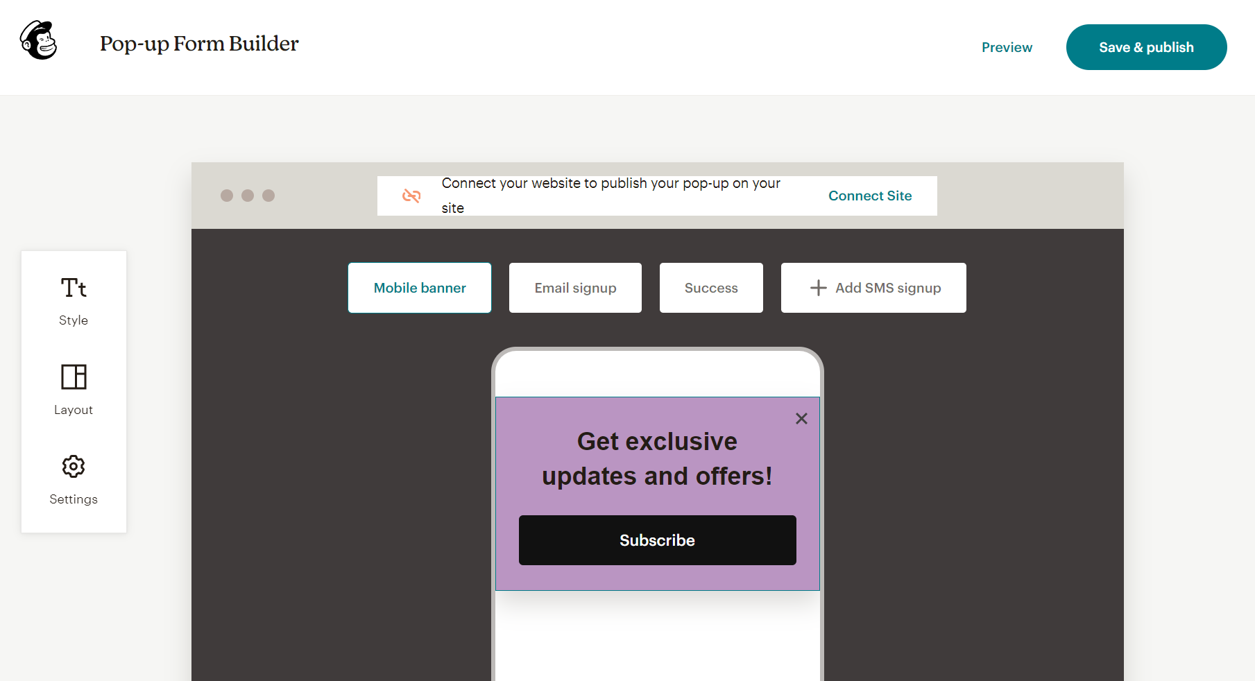 When using behavior-based triggers, you can create pop-up forms and make them visible to users who perform specific actions on your website. MailChimp allows you to build exit intent or scroll pop-ups to collect potential customers' data after they explore specific elements of your website.